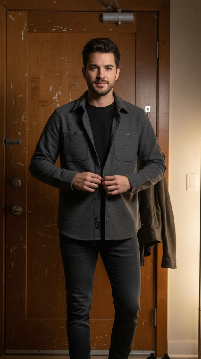 Liverpool LA - Tyler George is a refined knit button-up long sleeve shirt that effortlessly transitions from casual to polished. Crafted with quality construction, this piece features a classic silhouette with modern appeal. The versatile design pairs seamlessly with tailored trousers, denim, or layered pieces, making it an essential addition to any wardrobe. Perfect for those who appreciate understated elegance and timeless style.